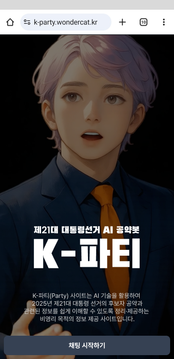 K-파티(Party) 사이트는 AI 기술을 활용하여 2025년 제21대 대통령 선거의 후보자 공약과 관련된 정보를 쉽게 이해할 수 있도록 정리·제공하는 비영리 목적의 정보 제공 사이트입니다.